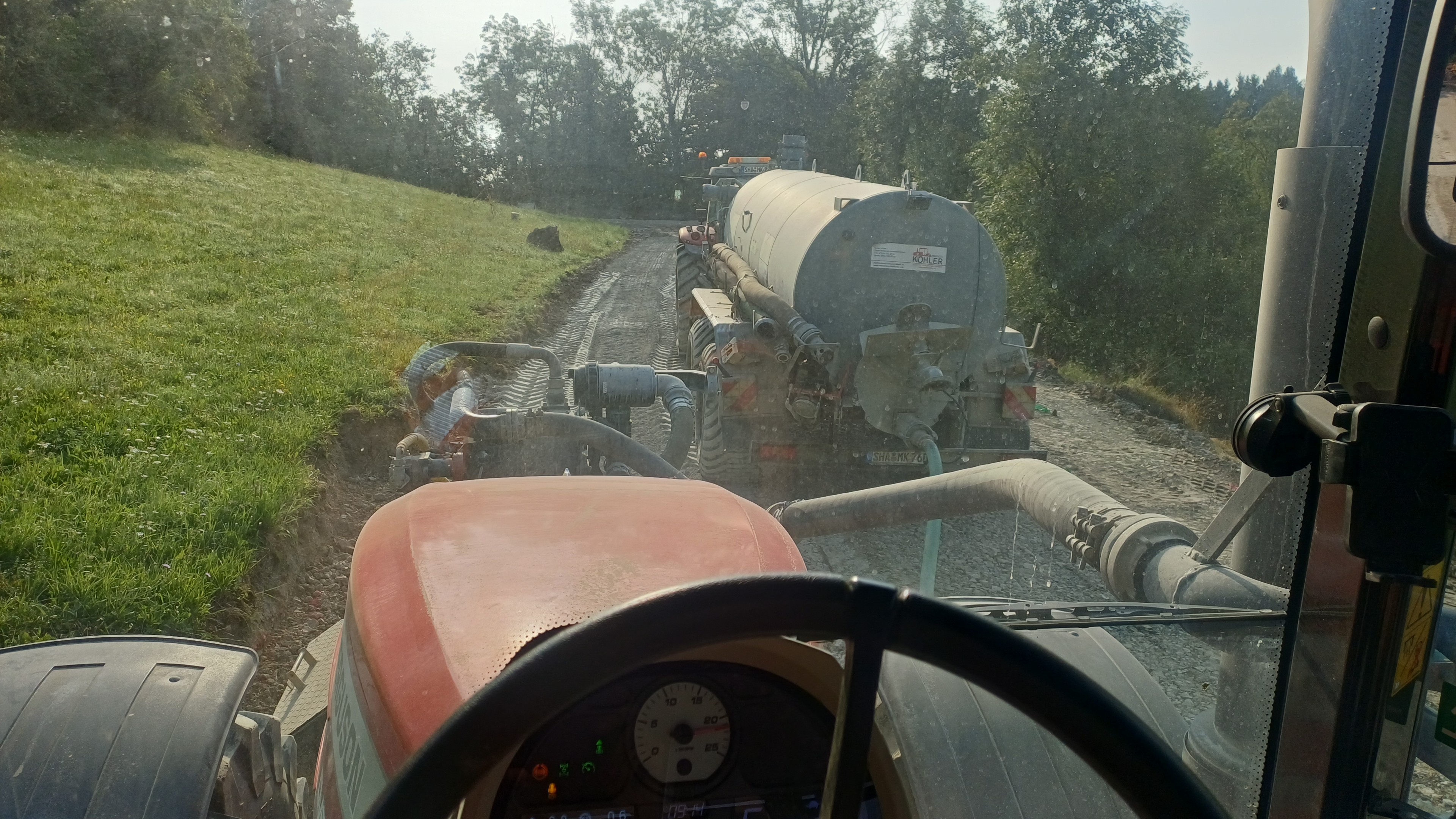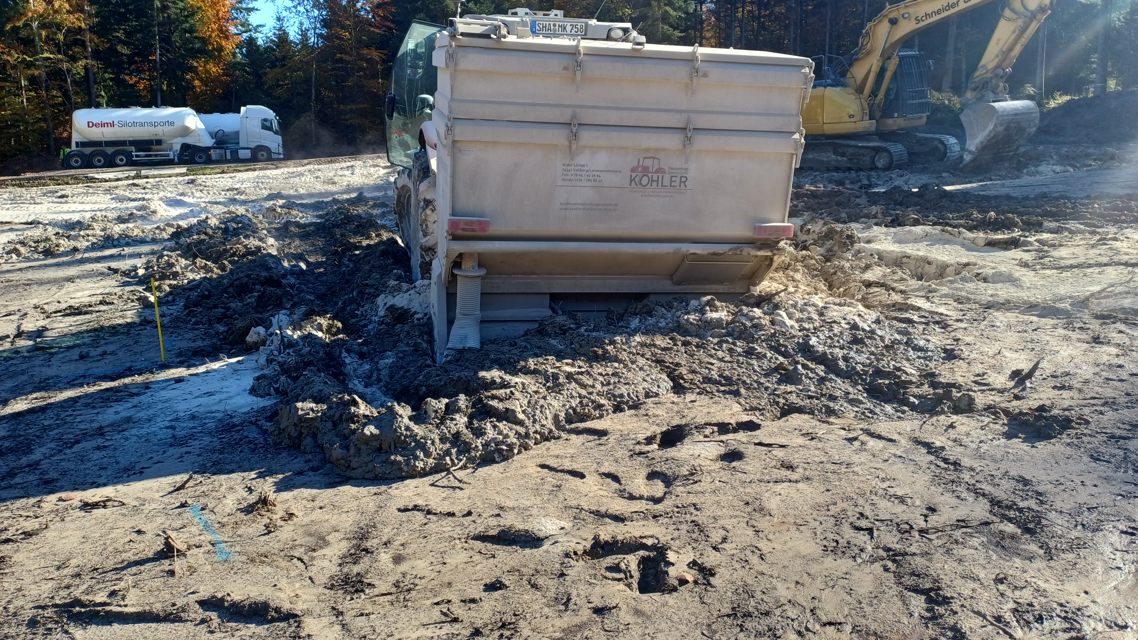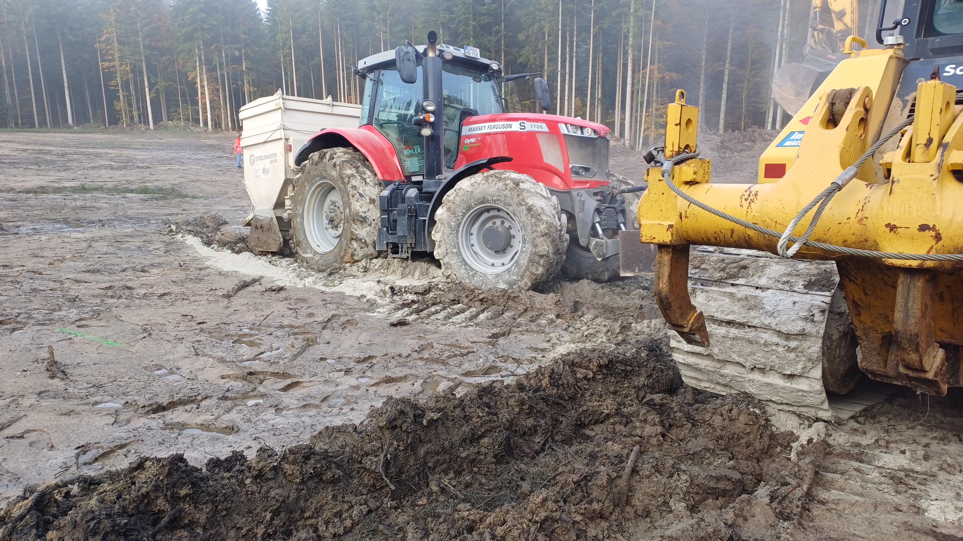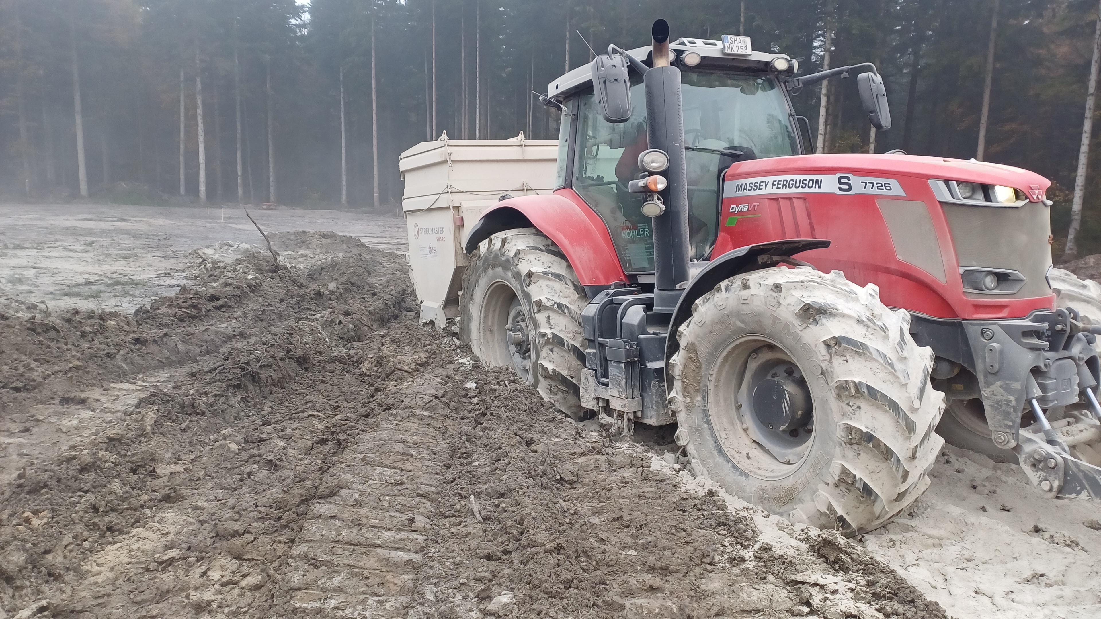 Mit dem Frontstreuer wird Kalk ausgebracht und mit der Fräse in den Boden eingearbeitet. Hiervon ist jeweils ein 3,5 m³ und ein 10 m³ Anhängestreuer vorhanden – beide können unabhängig voneinander arbeiten.